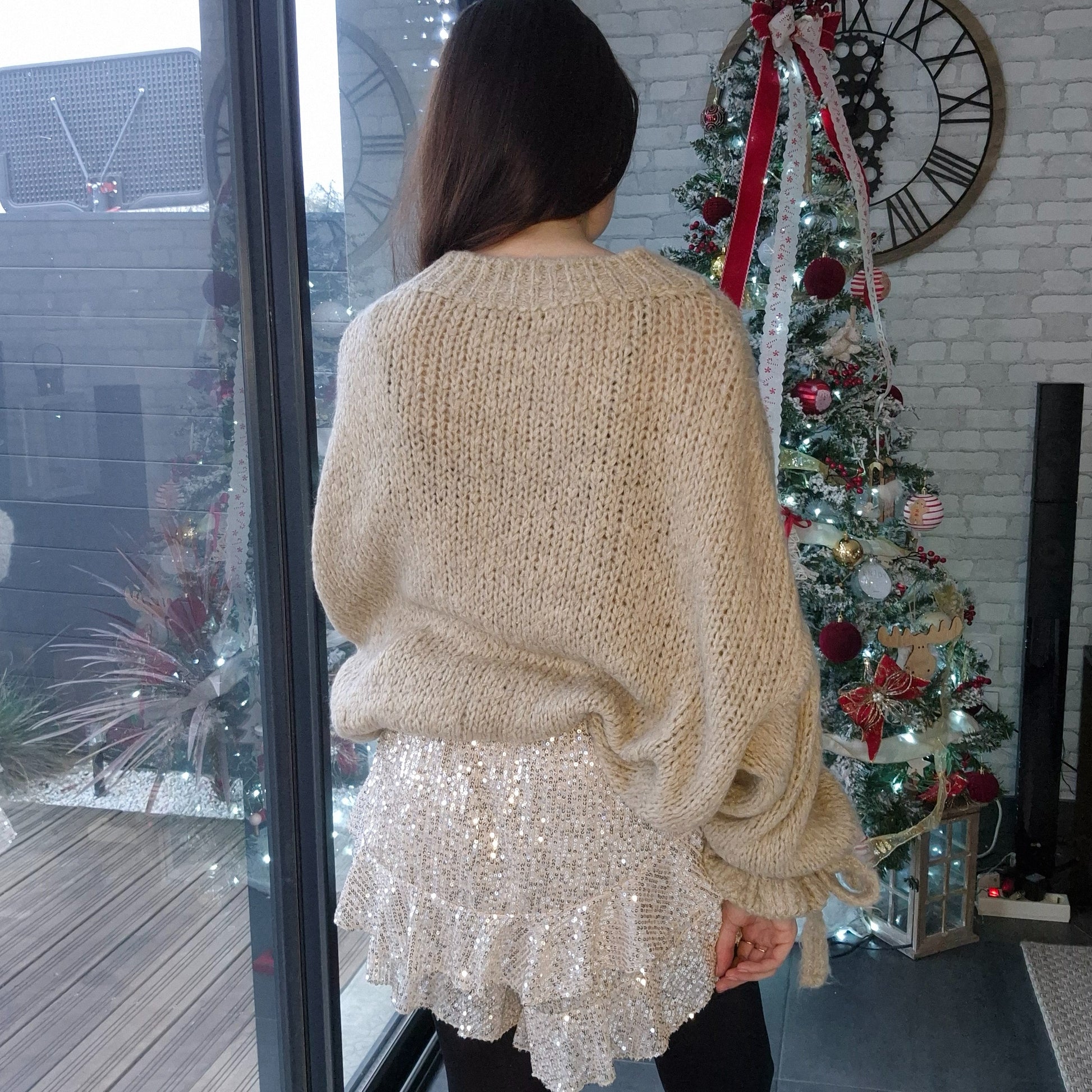 Pull comportant de l'acrylique, ce qui le rend très confortable. La présence de liens sur les poignets lui donne un côté original.
